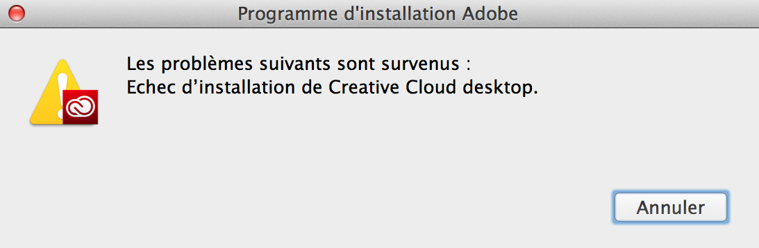 Voila je souhaite installer le creative cloud et voici le message qu'il m'affiche :