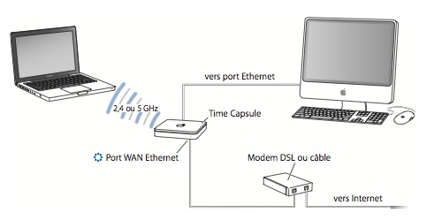 la time capsule est connectée via WIFI à mon ordinateur via la livebox a laquelle elle est reliée par un cable ethernet.