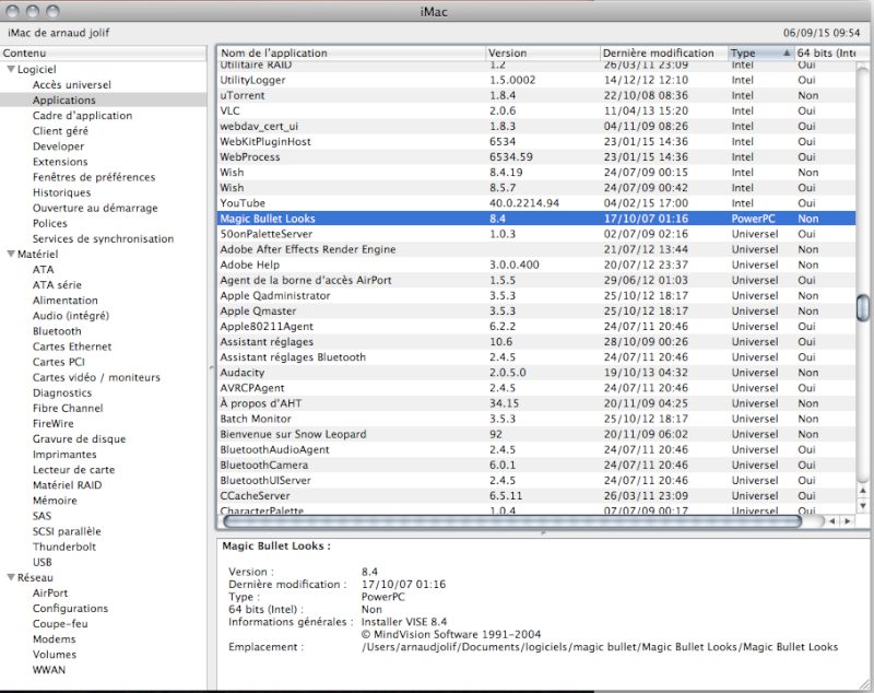 Bonjour à tous ! Je me présente, arno, 50 ans, intermittent du spectacle, preneur de son et réalisateur monteur. Ma machine, imac 27 pouces, fin 2009, 8 gigas de ram, 1T, 2.8 Ghz intel core I7.