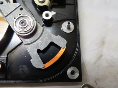 Ce matin j'ai ré-ouvert le DD et démonté l'aimant. Mes caoutchoucs sont translucides et non collants. Le bras de tête est propre (voir photo). Depuis que j'ai tout remonté, au démarrage, les têtes partent lire les secteurs extérieurs du disque et plus rien ensuite. (voir photo 3 ). Je n'ai pas réussi à relancer le Mac ce matin ...
