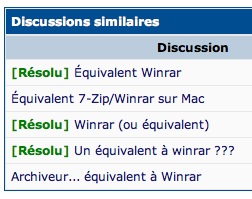 Bonsoir, Je passe pour la première fois du PC au MAC. Je n'ai jamais travaillé sur MAC mais j'ai une énorme expérience de Windows. Je me demandais si il existait un équivalent de WinRAR pour MAC ? C'est un outil que j'utilisais énormément. Merci d'avance. bee