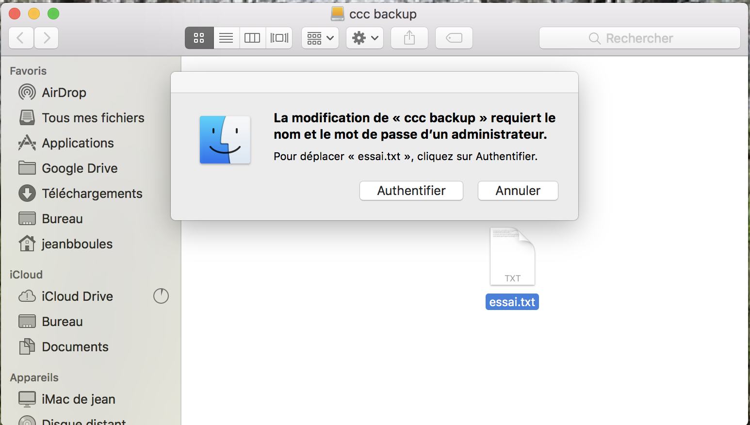 sudo chown jeanbboules:staff /Volumes/"ccc backup"